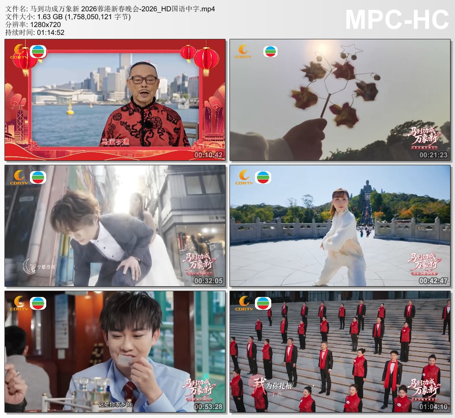 农历新年临近,香港TVB与成都市广播电视台联合制作《马到功成万象新2026蓉港新春晚会》,司仪汪明荃、陈贝儿、张驰豪、袁莉、郭怡飞召集两地近百位艺人,跨地域迎马年!盛会融合不同武术流派,展现两地「精武」风采。小生、花旦穿梭经典场景与地标,呈现TVB黄金电视剧主题曲。 「童声」齐高歌,传递香港独有文化魅力。艺人走访蓉港两地,网罗吃喝玩乐潮流情报,介绍贺年活动。还有精彩歌舞表演,借双城活力带动喜庆气氛。